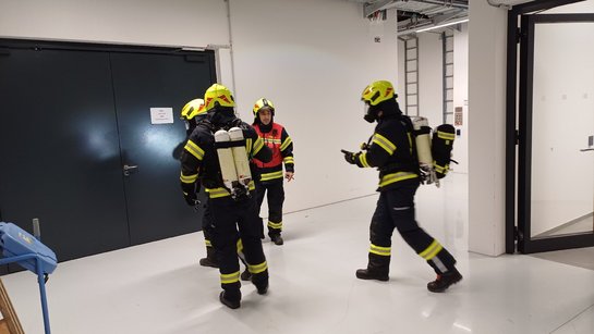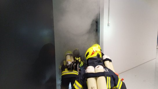 Das erste Szenario spielte sich im Keller des Objektes 42 ab. Ein rauchendes E-Fahrzeug löste dort den Alarm aus.