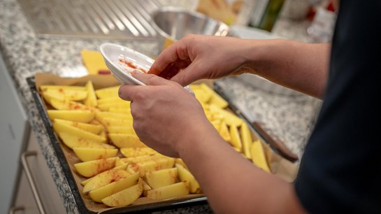In kleinen Gruppen füllten die Kinder gemeinsam mit unseren Jugendbetreuern Frankfurter mit Käse und wickelten diese in Speck ein, um daraus köstliche Berner Würstel zu zaubern. Als Beilage wurden Kartoffeln aus Gunskirchen – gesponsert von unserem Kameraden Eder Fredi – in Spalten geschnitten und im Ofen knusprig gebacken. Für den gesunden Touch sorgte ein frischer Karotten-Krautsalat.